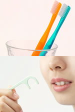 ●歯ブラシと一緒に歯間ブラシやデンタルフロスを使うと、取りにくい歯間の歯垢も効果的に取り除くことができます。